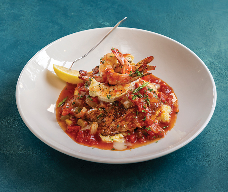 Spicy seared grouper, jumbo shrimp, buttered heirloom grits, creole sauce
